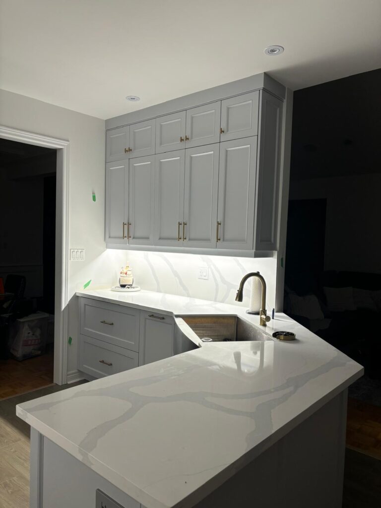 For those wanting a complete transformation, Cabinet Hive offers full kitchen renovations that pair perfectly with our custom kitchen cabinets Markham service. This may include layout redesigns, new cabinetry, quartz countertops, backsplash installations, pantry builds, island additions, and smart storage solutions. In communities like Angus Glen, Victoria Square, and Greensborough, homeowners often request open-concept layouts, extended workspaces, taller pantries, and upgraded lighting. Our team handles everything from design to installation, giving you a kitchen that feels brighter, more spacious, more functional, and truly tailored to your lifestyle.